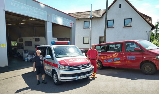 Stefan Groß nahm heute in seiner Funktion als stellv. Leiter Einsatz den neuen Mannschaftstransportwagen beim KFZ-Meisterbetrieb Hubert Schön in Lebach-Aschbach für unsere OG in Empfang. Der VW T6 Caravelle, 2.0 TDI mit 150 PS, 9 Sitzplätzen und langem Radstand wurde zuvor in der Autovermietung Schön genutzt und wurde nach dem Verkauf von unserer OG als Einsatzfahrzeug im Katastrophenschutz in Eigenleistung umgebaut. Das Fahrzeug verfügt über eine Sondersignalanlage sowie BOS-Funk für Einsatzfahrten im Katastrophenschutz und in der Allgemeinen Gefahrenabwehr im Wasserrettungszug des DLRG Bezirk Saarlouis. Es ist mit einem Regalausbau für Boots- und Strömungsrettermaterial im Heck und seitlichen Arbeitsscheinwerfern ausgestattet. Auch Mat ... Mehr erfahren